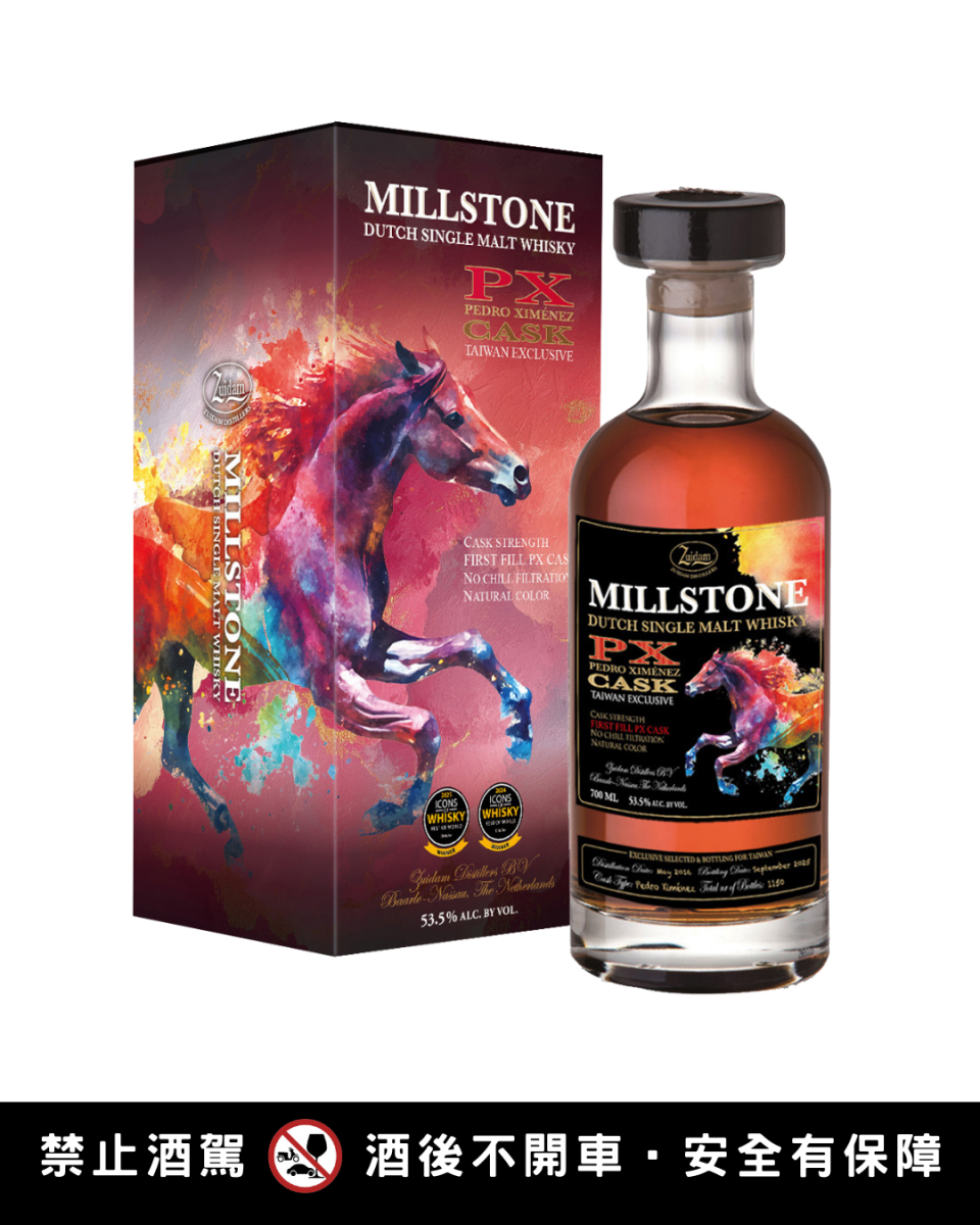 來自荷蘭Zuidam 酒廠的米爾登單一麥芽威士忌,以風車與麥田聞名其風土精神。本次推出台灣限定馬年紀念原酒,酒精濃度高達53.5%原桶強度,濃郁葡萄乾、蜜餞、可可、烘烤堅果與香料氣息交織,酒體厚實卻平衡,尾韻綿長優雅。完整展現PX 雪莉桶的濃厚風味。以奔馳駿馬為設計主軸,色彩繽紛帥氣奔放,象徵馬年勇往直前、氣勢如虹;背景呼應荷蘭麥田與釀酒原料意象,兼具藝術感與收藏價值。原酒級實力,為新年開出好彩頭。建議售價3350元