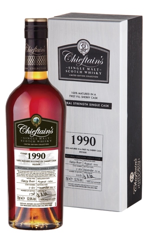 2012年首次推出老酋長100%全程第一手雪莉桶蘇格蘭威士忌,特別以非單桶原酒、小批次酒精濃度46%打頭陣,柔順的口感成功擄獲消費者的喜愛及青睞。其中,老酋長1990蘇格蘭威士忌46度打敗眾多參賽品項獲得2015麥芽狂人競賽(Malt Maniacs Award)銀牌殊榮。經過46%強度的洗禮,進而踏入高酒精濃度原酒的領域的品飲者更是不在少數。在一片搶購單桶雪莉桶原酒聲浪中,這4年來仍擁有高人氣詢問度的酒款,再度席捲而來,2016年春天再次限量推出老酋長1995雪莉桶小批次46%威士忌,百分百第一手雪莉桶,圓潤滑順極致口感,酒齡20年,限量2465瓶。